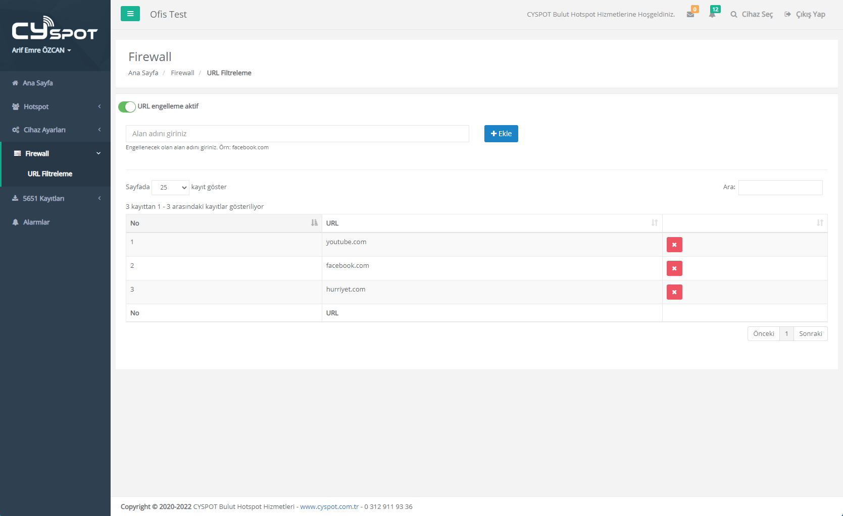 Hotspot hizmetinin yanında temel URL engelleme yapabilirsiniz.